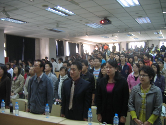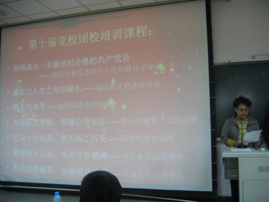 激昂的國歌聲之后,陳璐老師致開幕辭。她指出學生干部是學生中的骨干,是開展學生工作的核心, 09 級的學員們應該提高自身思想素質,積極進取,踏實工作,希望學員們在學習中不斷成長蛻變。孟國棟老師發表講話,并對同學們提出兩點希望:第一、認真學習黨團知識,盡快成為黨團建設的主心骨;第二、各學生干部要以身作則,不斷提高各方面能力,注重綜合素質的培養。 09 級團員王小昕同學作為學員代表在發言中表示,要刻苦努力、嚴格要求自己的決心,展現出學員們的活力朝氣、意氣風發。