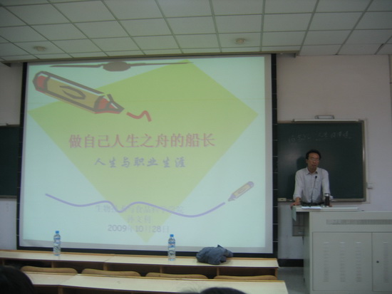 開幕式后,孫文利老師以“做自己人生之舟的船長——人生與職業生涯” 為題,開設此次培訓的第一講。他認為人生是一段豐富多彩的歷程,人在不同階段有不同愿望和不同需求,在實現愿望滿足需求的過程中,主宰自己的人生。職業生涯是最為重要的組成部分,因此,進入大學后為自己制定一個好的職業生涯規劃時很有必要。他說:大學其實是一個社會的縮影,人生之途,從步入大學真正開始。好的規劃會引導同學們進入良性循環,我們制定好職業規劃后就要嚴格按計劃實施,并在實踐中不斷反省修訂目標,反省人生策略手段以適應環境。在授課中,孫老師以自己的親身經歷為例,插入富有哲理的故事,深入淺出的為同學們介紹其中的道理。最后,孫老師留給了我們耐人尋味的贈言:“只要開始,永遠不晚,只要進步,總有空間。”