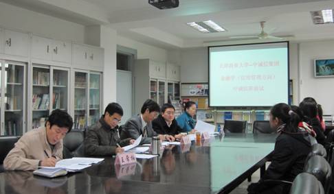 11 月 8 日,我校與中誠信集團聯合培養金融學專業(信用管理方向)招生面試工作在經濟學院 3 樓會議室進行,中誠信集團副總裁黃建悅及中誠信集團北京分公司副總經理郝曉冬及經濟學院劉小軍院長、經濟學院金融系主任王常柏教授、金融教研室主任劉玲博士共同主持了面試。此次招生面向全校 2009 級學生,經過報名篩選,共有 50 余名學生獲得面試資格,在進行嚴格的面試后, 35 名同學有機會進入金融學專業(信用管理方向)學習。