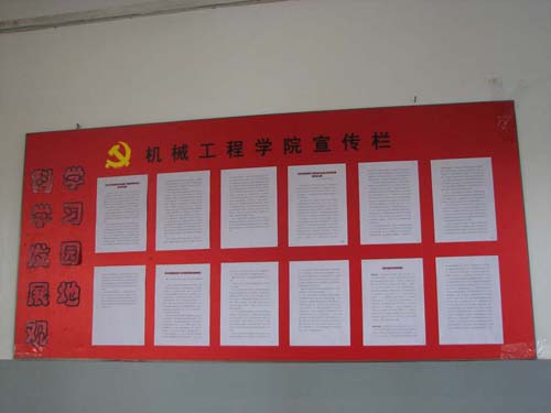 為深入學習貫徹科學發展觀,機械工程學院黨總支在辦公樓內建立了科學發展觀學習園地,摘登與學習有關的內容,幫助師生找準學習重點,理清學習思路。