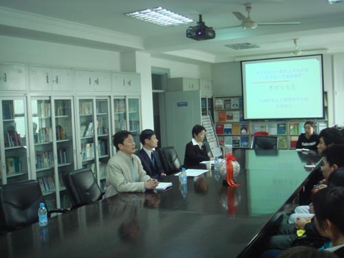 11日下午,曹國寶先生還為 2007 級新錄取的金融專業(光大期貨方向)學生進行了學業指導。曹國寶先生首先介紹了光大期貨公司在期貨行業里的相關情況,并對期貨班同學兩年里的課程安排、實習培訓、畢業要求等同學們關心的問題做了詳細說明。最后,王常柏教授告誡同學們要繼續保持進取心和求知欲,扎扎實實學好金融專業知識,迎接美好的未來。曹總和王教授親切的話語受到同學們的熱烈歡迎,他們踴躍參與討論,學業指導座談會在和諧熱烈的氣氛下圓滿結束。
