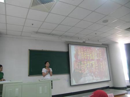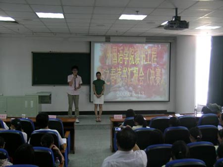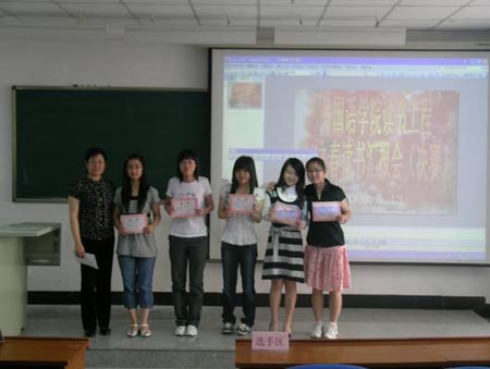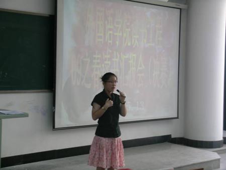 為了給學生營造良好的學習氛圍,培養學生的拼搏和創新精神,為了使學生徜徉于書的海洋,領略世間的美好,感受智慧的博大精深,體悟知識的浩瀚無窮,激發創新和拼搏精神,為了配合外語專業課程的學習,外國語學院從本學期開學以來,以岳福新副教授為主策劃人,針對 08 年級繼續實施開展了讀書工程計劃。計劃分三大部分 : 為學生提供學校圖書館和外國語學院資料室專業閱讀數目 , 分門別類 , 逐一劃分閱讀類別和等級,為每位學生印制《導讀指南和背誦英語經典名篇手冊》,要求在不同的年級和學期完成不同的背誦內容 ; 要求學生兩周寫一次讀書報告 , 老師嚴格判閱 , 成績記入平時成績 ; 每學期舉辦兩次讀書匯報會 , 評選出“讀書之星”和“背誦之星”。評選出一到三等獎 , 頒發獎品和證書,并張貼宣傳優秀讀書報告。