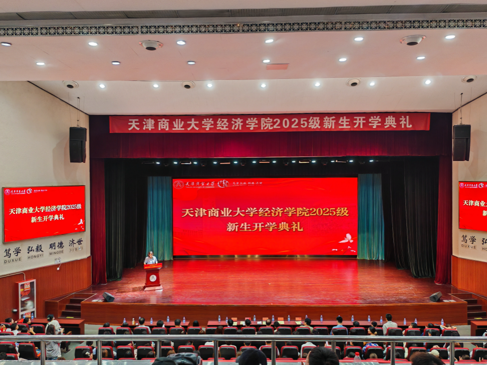 9月17日下午,經(jīng)濟(jì)學(xué)院2025級(jí)新生開學(xué)典禮暨開學(xué)第一課在科學(xué)會(huì)堂舉行。學(xué)院黨政領(lǐng)導(dǎo)班子成員、各系主任、專業(yè)負(fù)責(zé)人、新生班主任、研究生導(dǎo)師、輔導(dǎo)員以及全體新生參加典禮。典禮由學(xué)院團(tuán)委書記張歡主持。