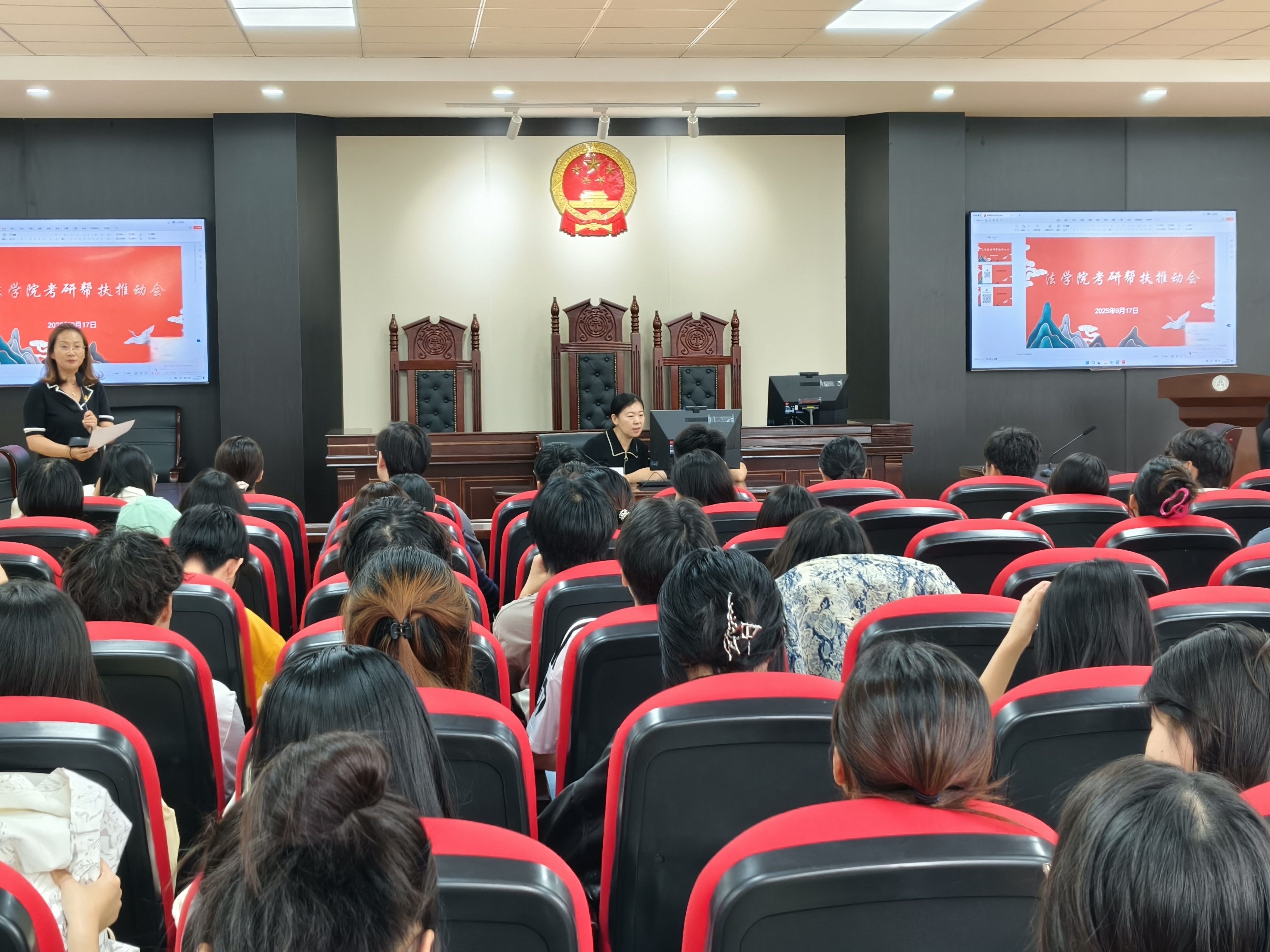 為切實做好2026屆畢業生考研指導與幫扶工作,幫助學生明確考研目標、科學規劃備考路徑,9月17日下午,法學院組織召開2026屆畢業生考研幫扶推動會。學院黨委書記梁澤軍,黨委副書記、院長沃耘,黨委副書記李春陽出席。學院十二名專兼職輔導員及2026屆一百二十余名法學專業備考生參加。會議由黨委副書記李春陽主持。
