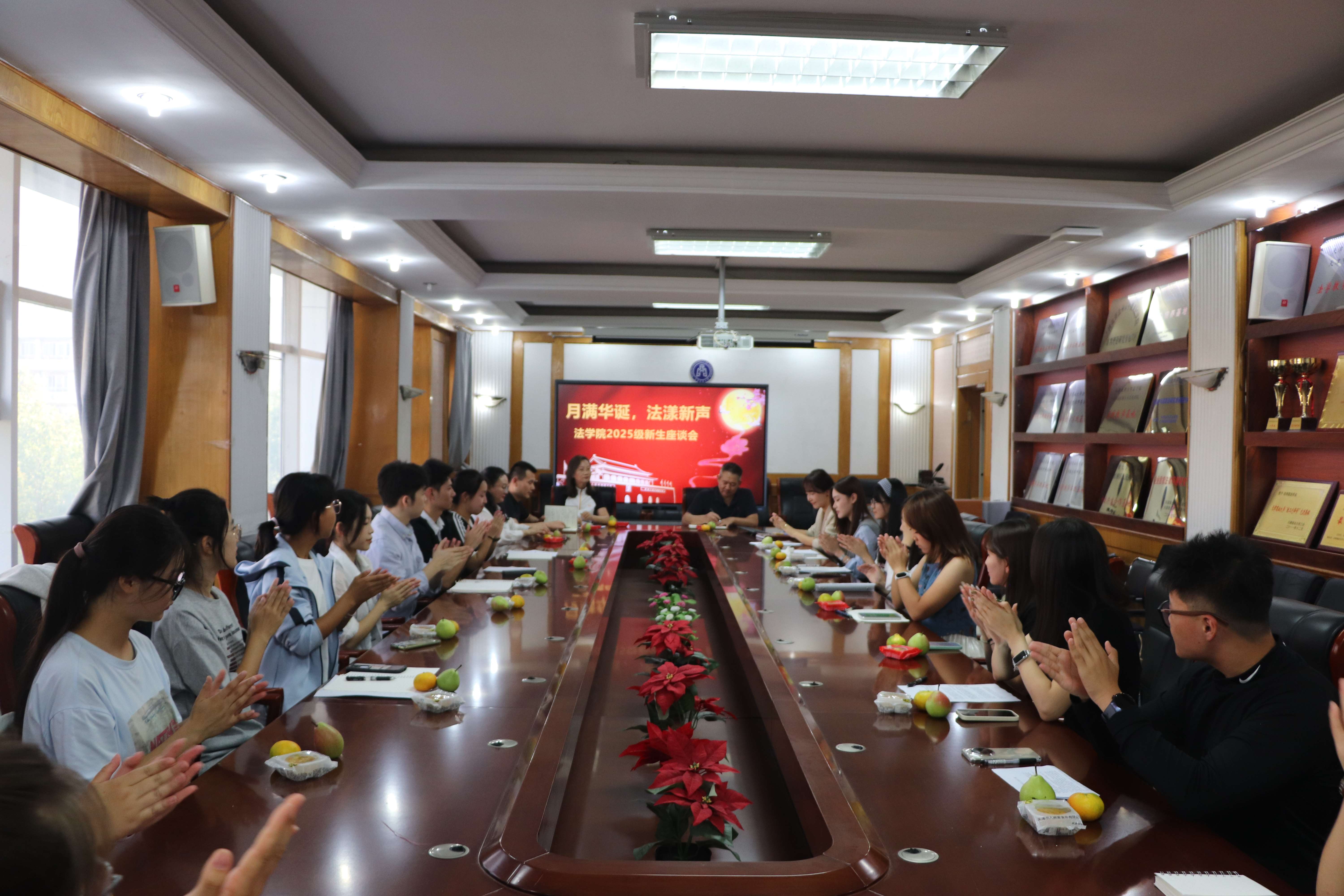 秋陽和煦,雙節同慶。為歡迎2025級新生,傾聽學生心聲,助力新生快速融入大學生活,9月24日,法學院舉辦以“月滿華誕,法漾新聲”為主題的新生代表座談會。學院黨委書記梁澤軍、黨委副書記李春陽、25級本科生輔導員徐杰、少數民族輔導員吐爾遜阿依·買合蘇提,以及本科生、研究生、少數民族、留學生群體的新生代表參加。