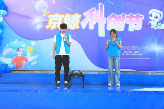 開(kāi)幕式上,研究生隊(duì)員展示了創(chuàng)新成果——“鐵蛋”機(jī)器狗。它靈活的步伐和生動(dòng)的表演瞬間點(diǎn)燃全場(chǎng),不僅展現(xiàn)了學(xué)院在智能科技領(lǐng)域的創(chuàng)新實(shí)力,也激發(fā)了孩子們對(duì)科學(xué)的好奇與向往。