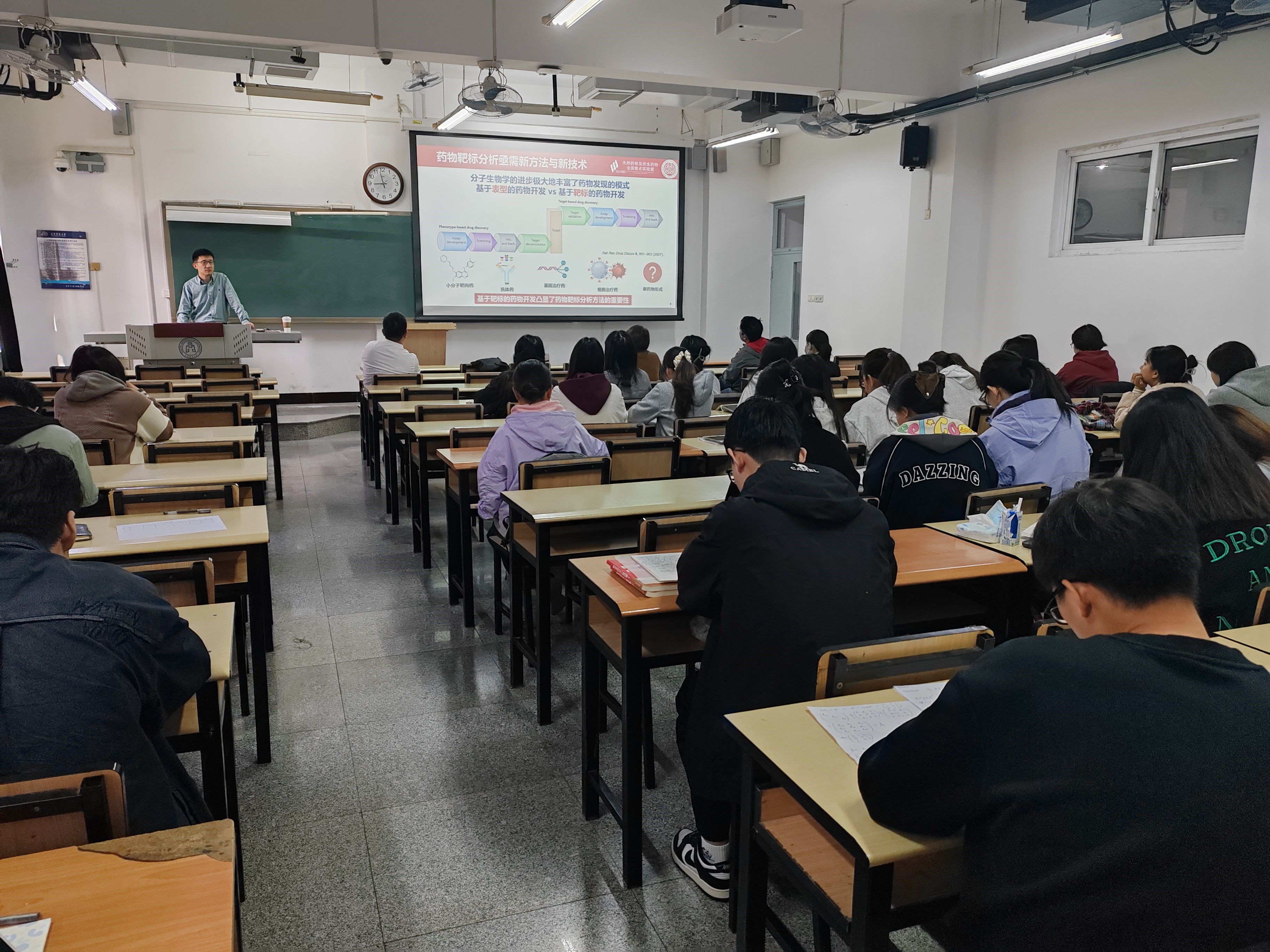 本次活動是研究院推動“科研反哺教學”、深化本科教學改革的重要舉措。講座主題“靶標分析核酸適體分子進化”與《藥物分析》課程中“藥物分析新技術與新方法”章節內容高度契合。張力勤教授以近期創新成果為案例,生動闡述了功能核酸適體從基礎研究到藥物篩選、疾病診療的全過程應用,將抽象的理論知識轉化為具體的科研實踐,展現了前沿科技融入課堂教學的實效。