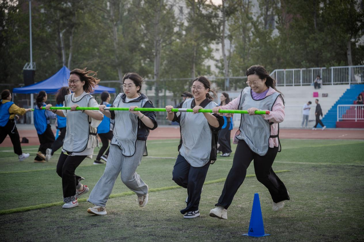 活動通過“反口令”“齊眉棍”熱身并完成抽簽分組,7支隊伍快速完成團隊創建與亮相后,核心拓展環節正式開啟。“無敵風火輪”“巨人腳步”“運轉乾坤”“旋風少年”“團體動力圈”五項特色活動接連上演,隊員們或合力推動道具、同步突破障礙,或傳遞器械、協作完成繩上挑戰,全程默契配合、彼此支援,現場吶喊助威聲此起彼伏。比賽勝負之外,同學們更在一次次協作中拉近距離,收獲了珍貴的默契與友誼。
