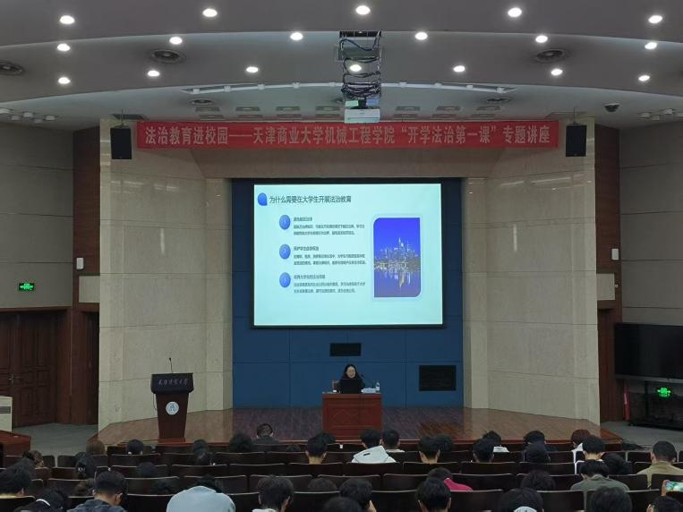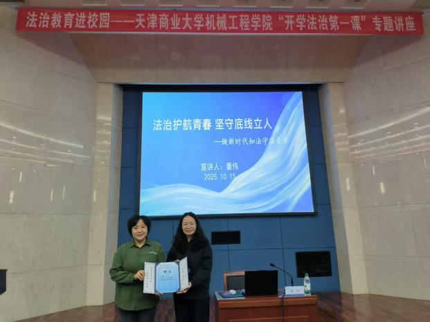 10月15日,學院在圖書館國際報告廳舉辦“開學法治第一課”專題講座。本次講座邀請天津市法律援助中心法律援助科科長董偉擔任主講嘉賓,學院黨委書記張瑩、副書記王凱出席活動,學院輔導員及2025級新生300余人參加。