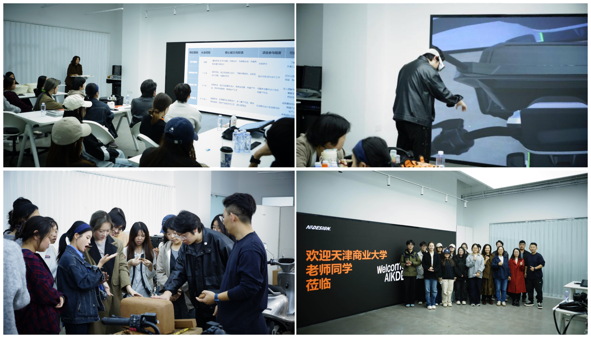 活動伊始,愛客設(shè)計總設(shè)計師帶領(lǐng)師生參觀公司工作環(huán)境,深入產(chǎn)品設(shè)計全流程,從概念構(gòu)思到3D建模系統(tǒng)講解,并參觀摩托車設(shè)計案例及樣品陳列展示;隨后,師生體驗油泥模型制作環(huán)節(jié),感受模型制作工藝;VR虛擬現(xiàn)實技術(shù)體驗則讓師生沉浸式理解數(shù)字化設(shè)計的創(chuàng)新邏輯。活動最后,人力資源部部長介紹招聘崗位及職業(yè)發(fā)展路徑,并設(shè)置現(xiàn)場面試環(huán)節(jié),為學(xué)生求職提供便利。院企雙方達成共識,未來將圍繞課程建設(shè)開展深度合作,共同探索“產(chǎn)學(xué)研用”一體化人才培養(yǎng)模式。