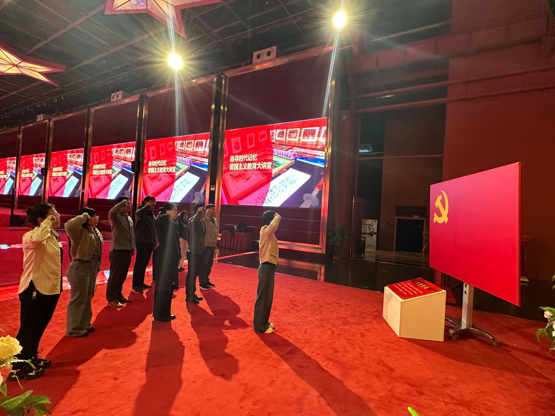 ?在“百年征程”展區,黨員們沿著時間脈絡,系統回顧了從抗日戰爭、解放戰爭到中華人民共和國成立后完成社會主義改造、改革開放和強國建設的光輝歷程。在莊嚴肅穆的偉人雕像前,支部黨員整齊列隊,敬獻花籃并重溫入黨誓詞。通過這一莊嚴儀式,全體黨員再次叩問初心,明確使命,強化為黨的事業奮斗終身的信念。