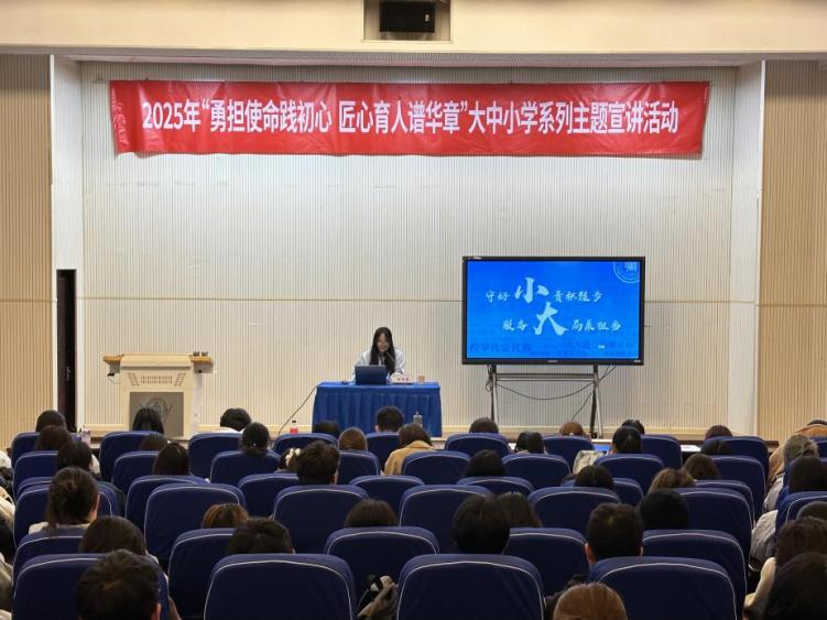 10月24日下午,黨委學(xué)工部在七教報(bào)告廳舉辦“勇?lián)姑`初心 匠心育人譜華章”大中小學(xué)系列主題宣講活動(dòng)?;顒?dòng)邀請(qǐng)第三屆全國高校思想政治理論課教學(xué)展示活動(dòng)一等獎(jiǎng)獲得者、天津工業(yè)大學(xué)思政課教師武雅君,以及2024年天津市大學(xué)生年度人物周學(xué)薈面向我校師生開展宣講。“青春領(lǐng)路人”輔導(dǎo)員宣講團(tuán)、“身邊榜樣”優(yōu)秀學(xué)生分享團(tuán)、“弘毅班”成員以及各學(xué)院學(xué)生代表200余人參加活動(dòng)。