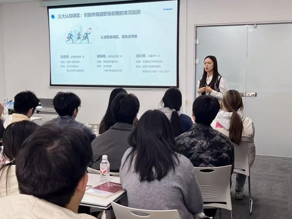 天商畢業、現就職于谷川的王怡楠學姐,以“讓自驅力成為超能力”為核心,結合自身經歷解答了“專業知識如何應用”“招商核心能力有哪些”等學生關切問題,用真實心路歷程規避職業誤區;21級招商班學姐劉艷艷則從谷川員工視角出發,講述她在大學期間就接觸到一線招商工作,并在帶教師傅指導下快速成長。