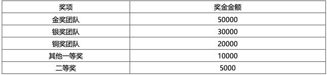 本屆大賽設置一等獎(含金獎、銀獎與銅獎團隊)、二等獎、三等獎。同時,還將評選優秀組織獎及優秀指導教師獎。獲獎隊伍由大賽組委會統一頒發榮譽證書及獎金。團隊獎項設置列表如下: