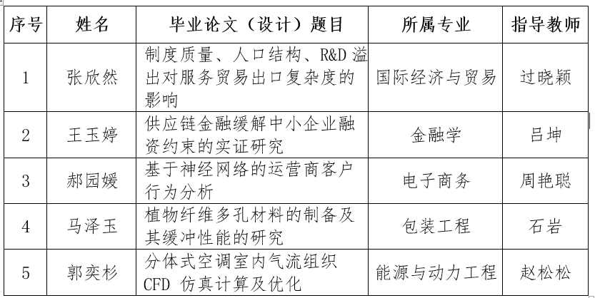 根據(jù)《市教委關(guān)于做好2020年度普通高等學(xué)校本科畢業(yè)設(shè)計(jì)(論文)有關(guān)工作的通知》(津教高函〔2020〕38號(hào))的要求,經(jīng)學(xué)院推薦、學(xué)校審查及校外專家評審,我校擬推薦經(jīng)濟(jì)學(xué)院、信息工程學(xué)院、機(jī)械工程學(xué)院報(bào)送的5篇校級(jí)優(yōu)秀畢業(yè)設(shè)計(jì)(論文)參加“第十一屆天津市級(jí)優(yōu)秀本科畢業(yè)設(shè)計(jì)(論文)評選”,現(xiàn)將擬推薦的畢業(yè)設(shè)計(jì)(論文)名單及全文(見附件)公示如下:
