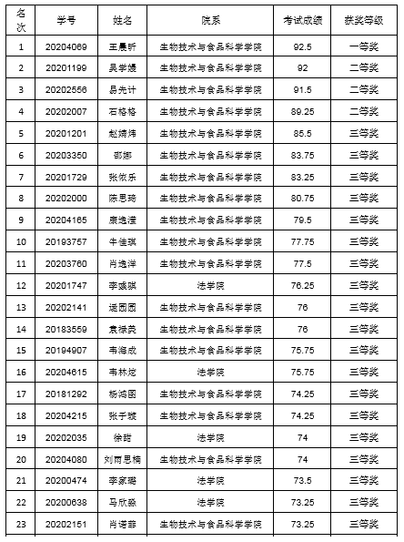 6月25日,我校2021年實驗室安全與衛生知識競賽圓滿結束,現將競賽獲獎學生名單公布如下: