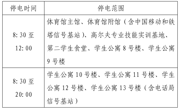 因學校變配電系統3號開閉站進行檢修,需要停電操作,將影響學校部分建筑供電。停電時間為2022年4月23日(星期六),具體停電時間及范圍如下: