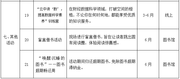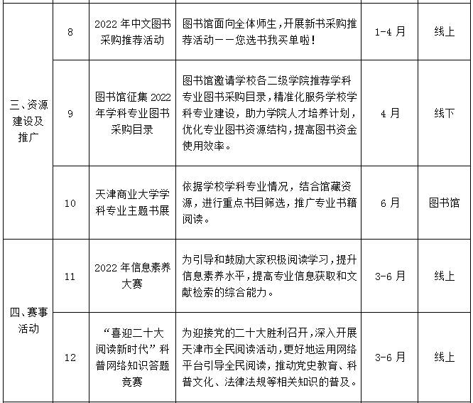 以上活動詳細內容敬請留意圖書館網站或“天津商業大學圖書館”微信公眾號通知,活動嚴格遵守學校疫情防控管理有關規定。