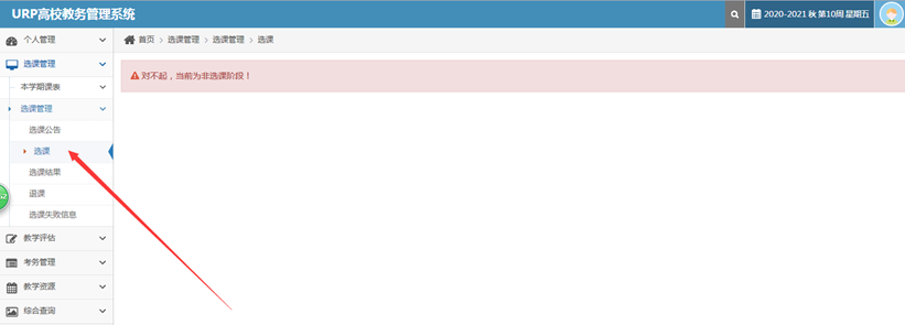 首先進入【選課管理】,可以看到左測的選課菜單,點擊【選課】。如【圖1-1】。