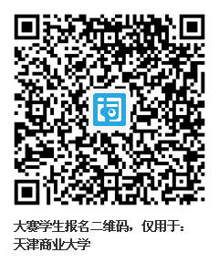 報(bào)名方式:參賽選手務(wù)必于截止日期前關(guān)注微信公眾號“詞達(dá)人”,進(jìn)入“學(xué)生端”,使用右上角的“掃一掃”功能,掃描下方的天津商業(yè)大學(xué)專屬報(bào)名二維碼進(jìn)行報(bào)名。進(jìn)入報(bào)名界面后,參賽選手須如實(shí)填寫本人真實(shí)姓名、學(xué)號、組別、年級、專業(yè)班級、聯(lián)系電話等信息,確認(rèn)提交完成報(bào)名。填報(bào)信息與競賽成績、獲獎(jiǎng)證書掛鉤,如果填報(bào)錯(cuò)誤或經(jīng)核查不實(shí),將可能被取消競賽成績。