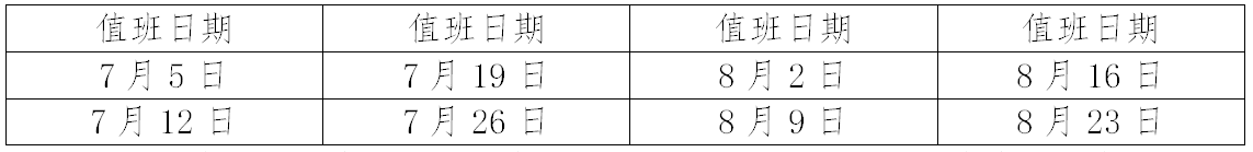 一、7月3日至8月29日期間,每周周三上午9:00至12:00安排專人值班,為校內外師生、校友及相關社會單位提供檔案查詢利用服務。8月30日起恢復正常上班時間。具體日期如下: