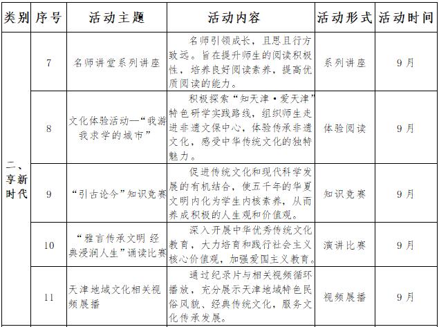 為深入學習貫徹習近平新時代中國特色社會主義思想,全面貫徹黨的教育方針,落實立德樹人根本任務,傳承紅色基因鑄魂育人,弘揚天津地域文化,引導學生養成良好讀書習慣,營造我?!皶阈@”文化氛圍。我校舉辦以“共讀踐行初心·傳承津沽文化”為主題的閱讀推廣系列活動。