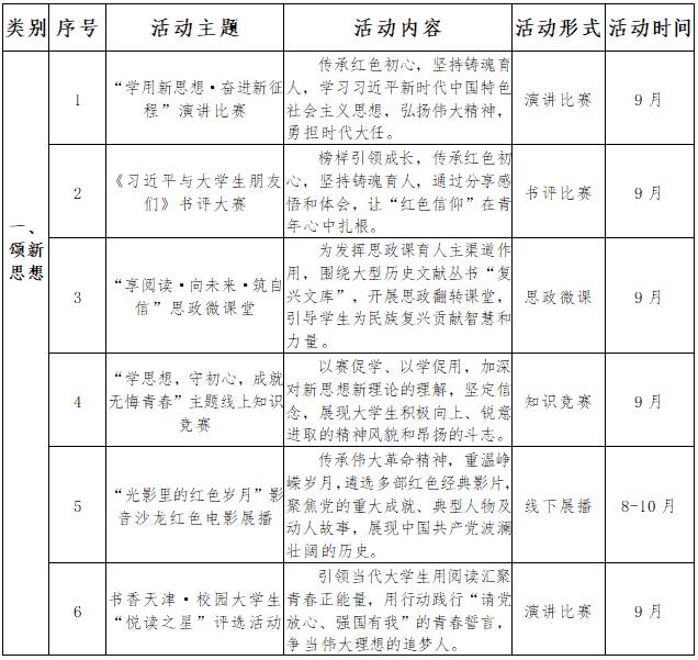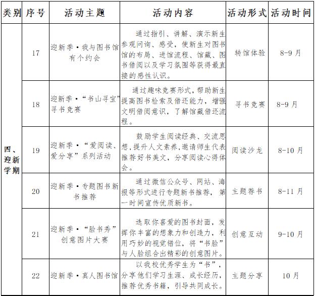 本次閱讀推廣系列活動精心策劃“頌新思想·享新時代·展新自信·迎新學期”四大板塊20余場,聚焦打造校園多維度閱讀服務體系,創建規范化、創新化、精品化的平臺,以啟迪師生思路,構筑師生信任,培育時代新風貌。