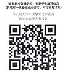 由天津市教育委員會主辦,天津工業(yè)大學(xué)承辦的《第八屆天津市大學(xué)生化學(xué)競賽》理論知識個人賽定于2023年10月14日下午2:00舉行,競賽參賽不收取任何費(fèi)用,我校學(xué)生個人賽參賽地點在天津商業(yè)大學(xué),筆試。競賽通知及具體內(nèi)容見附件一,報名二維碼如下: