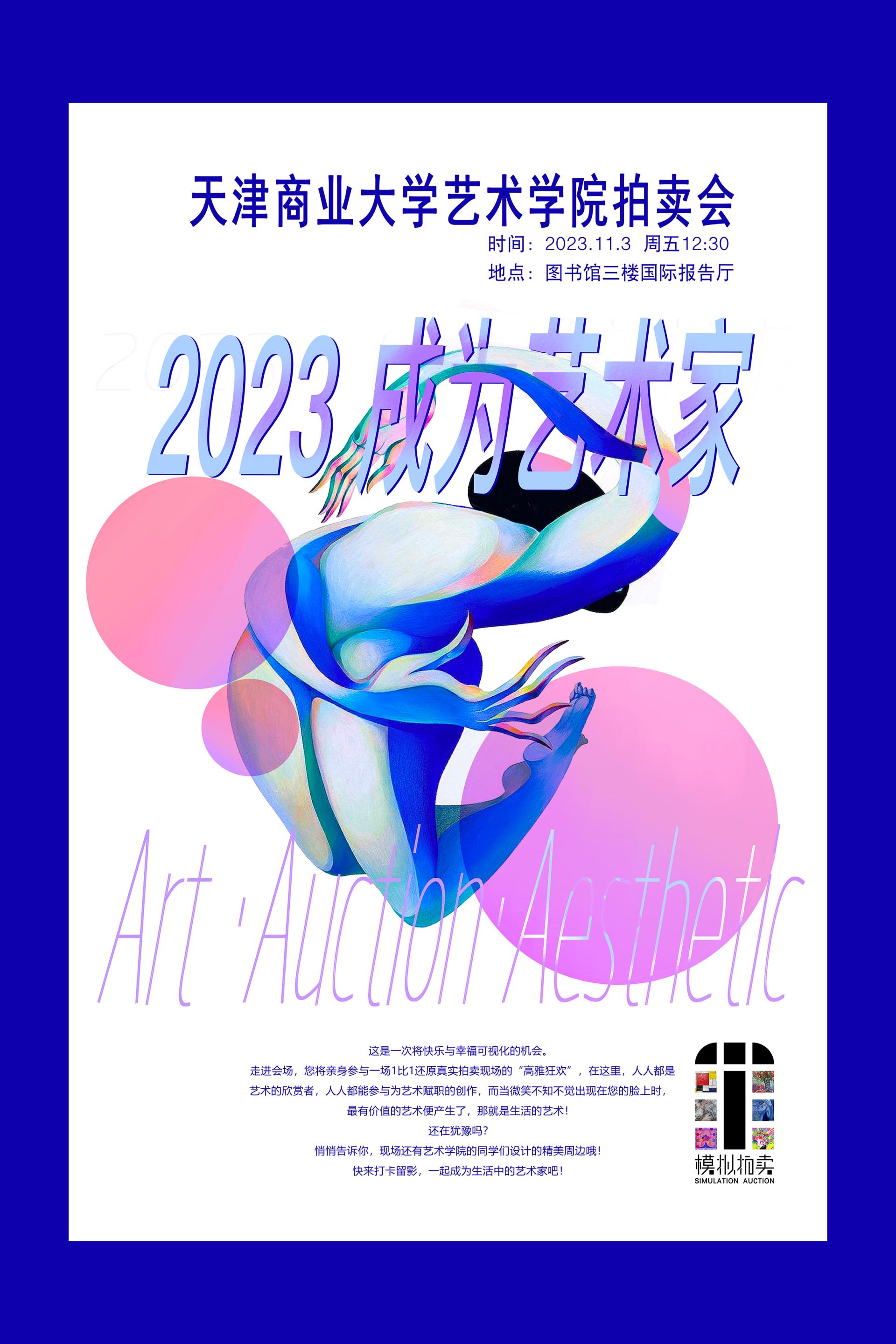 藝術(shù)學院將于2023年11月3日12:30,在圖書館三樓國際報告廳舉辦“一起成為藝術(shù)家”天津商業(yè)大學藝術(shù)學院拍賣會。此活動為藝術(shù)學院《模擬拍賣》實訓課程的最終課程成果呈現(xiàn),本次成果展示以“藝術(shù)?商業(yè)”為實訓實踐目標,所拍賣標的物均為具有原創(chuàng)性的藝術(shù)作品和衍生品。