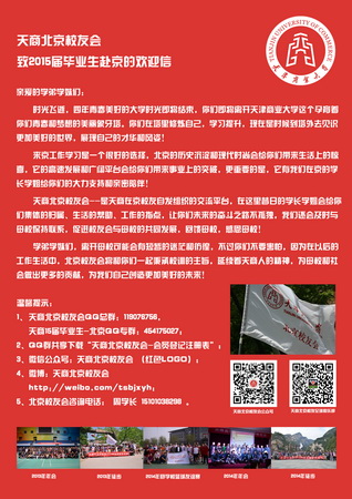 天商北京校友會致2015屆畢業(yè)生赴京的歡迎信
