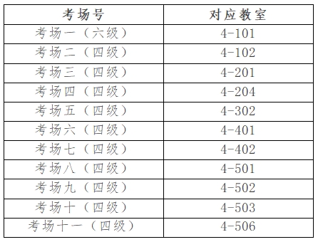 2.模考地點:4號教學樓,考場號對應教室如下: