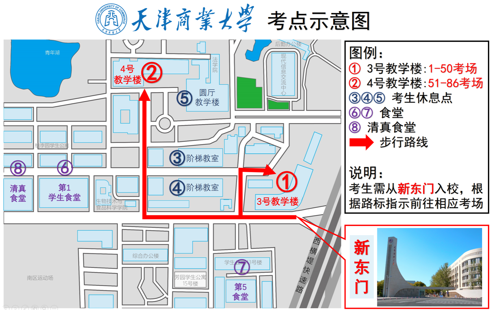 天津市2025年定向招錄選調(diào)生筆試、公開招考公務員筆試天津商業(yè)大學考點示意圖如下: