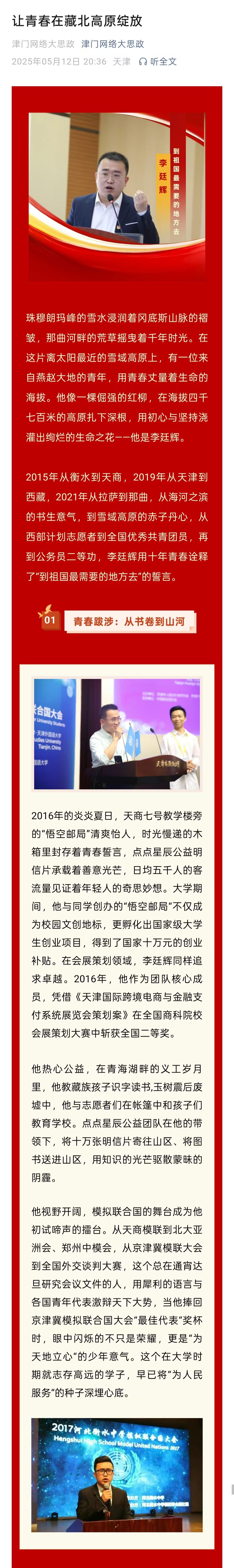津門網(wǎng)絡(luò)大思政微信公眾號報道我校優(yōu)秀校友李廷輝先進(jìn)事跡