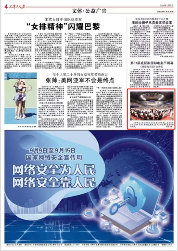 9月9日,《天津工人報》報道學校舉辦2024級學生開學典禮。