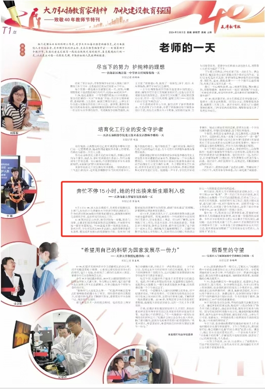 9月9日,《天津教育報》以“老師的一天”為主題報道我校經濟學院輔導員張歡生動典型事跡。