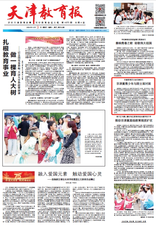 日前,《天津日?qǐng)?bào)》《天津教育報(bào)》報(bào)道我校舉辦京津冀青少年與院士面對(duì)面暨科普教育研討會(huì)。9月28日,在天津市科協(xié)、天津市教委、天津市科技局及中國(guó)物理學(xué)會(huì)的共同指導(dǎo)下,我校聯(lián)合天津市物理學(xué)會(huì)、天津市科普思政研究會(huì)舉辦京津冀青少年與院士面對(duì)面暨科普教育研討會(huì)。大會(huì)以“培植綠色情懷,共筑強(qiáng)國(guó)夢(mèng)想”為主題,旨在促進(jìn)京津冀協(xié)同發(fā)展,加強(qiáng)京津冀青少年在環(huán)保、科技等領(lǐng)域的交流與合作,共同筑牢綠色發(fā)展理念。