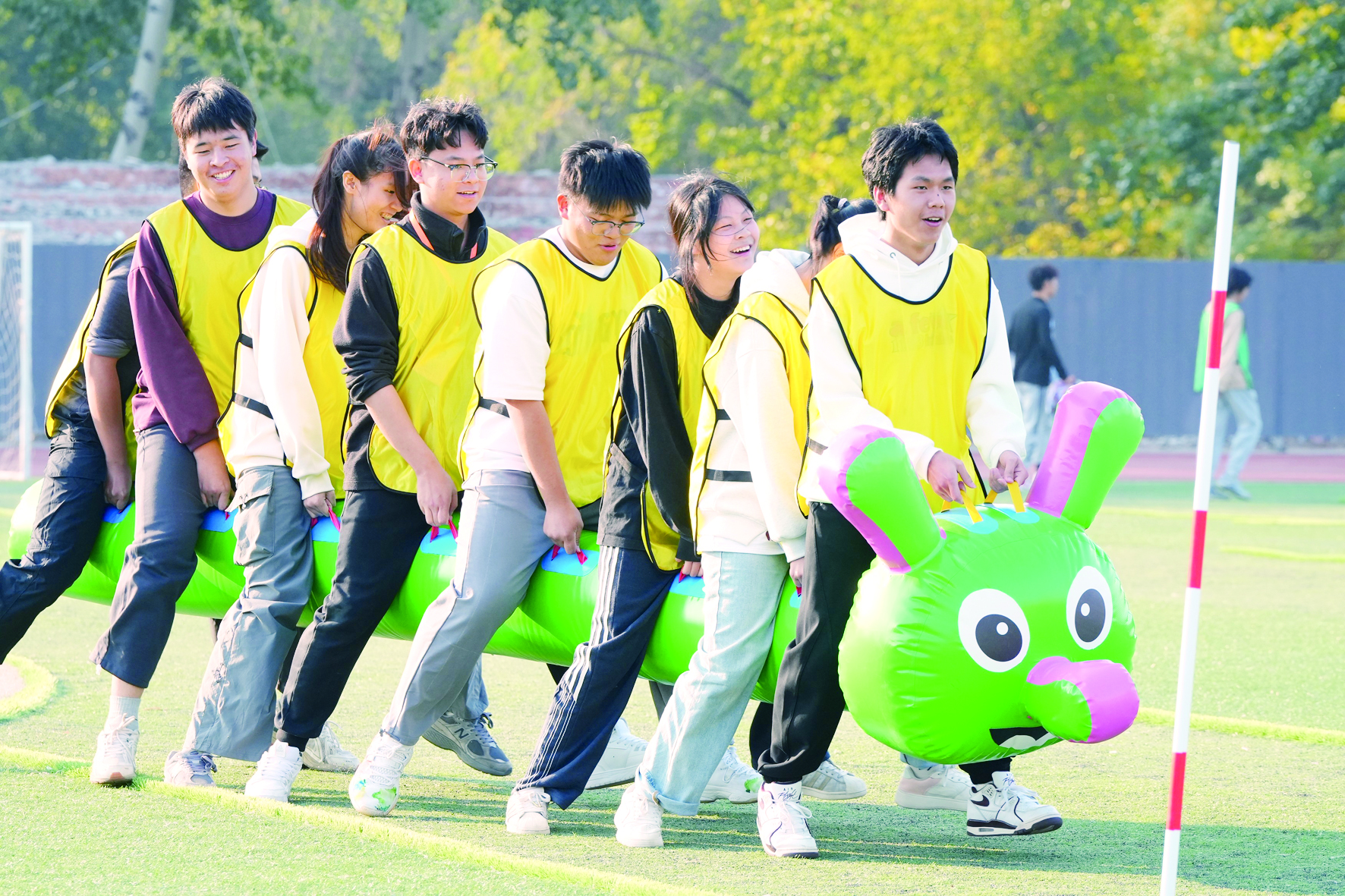 天津商業大學日前舉辦首屆學生心理素質拓展運動會,來自各學院的250余名參賽隊員、70余名師生代表和學生心理骨干參加。 沈岳 攝