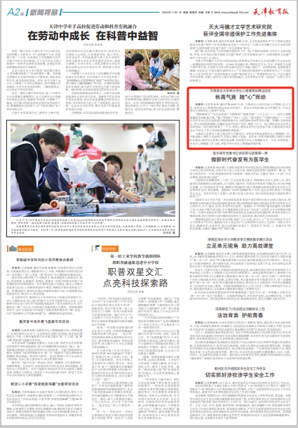 該校黨委學工部主要負責人馬靜表示,學校始終高度重視學生心理健康工作,不斷創新心理育人活動形式,拓寬心理育人渠道。近年來,學校不斷加強心理育人師資隊伍建設,擦亮學生朋輩心理互助品牌,有效提升學生心理健康水平。今后,學校將進一步加大心理健康工作力度,多措并舉為學生心理健康保健護航。(津云新聞記者 段瑋 天津日報記者 姜凝)
