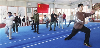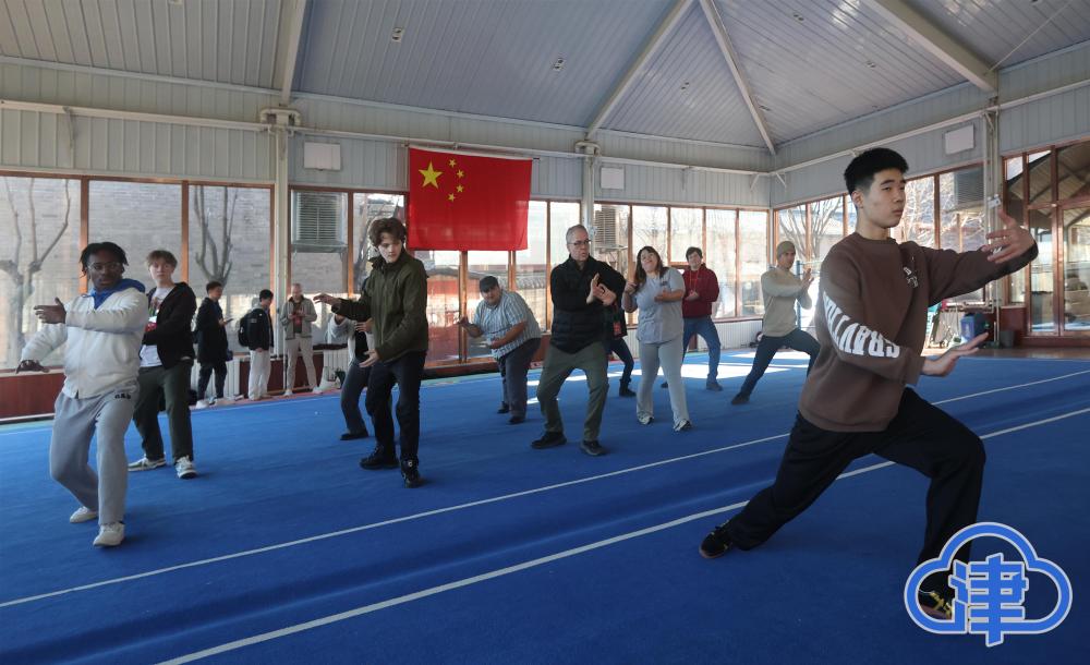 在霍元甲武術(shù)學(xué)校,來自美國特洛伊大學(xué)的研學(xué)團(tuán)師生于一招一式間感受中華武術(shù)蘊(yùn)含的深厚力量與哲學(xué)底蘊(yùn)。