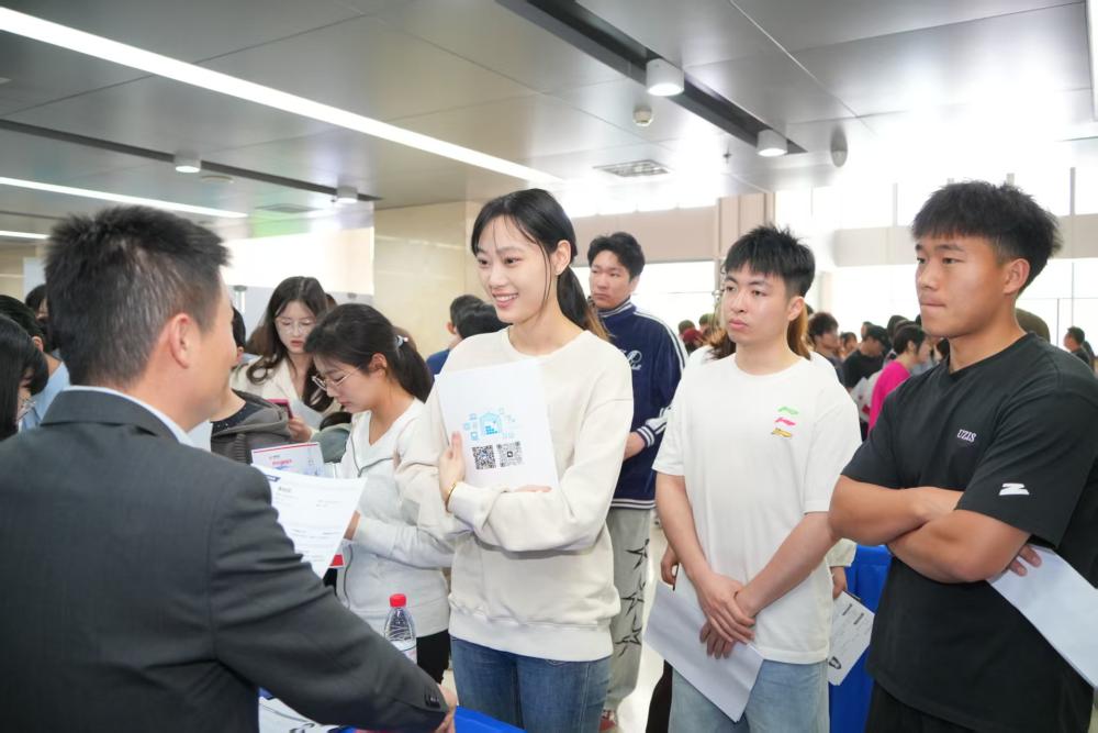 現(xiàn)場(chǎng)氣氛高漲、人潮涌動(dòng),學(xué)生們穿梭于各個(gè)展位之間,尋覓心儀崗位,積極與企業(yè)交流溝通。44家校友企業(yè)精心籌備、熱情參與,帶來近600個(gè)優(yōu)質(zhì)招聘崗位,招聘崗位涵蓋財(cái)經(jīng)、管理、機(jī)械制造等多個(gè)行業(yè)領(lǐng)域,為畢業(yè)生提供了廣闊的就業(yè)選擇空間。同時(shí)還依托校友企業(yè)的直播基地開展線上帶崗。線上線下參會(huì)學(xué)生900余人,現(xiàn)場(chǎng)投遞簡(jiǎn)歷1822份。