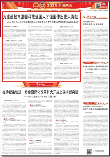 3月7日,《天津日報》報道我校全國政協(xié)委員、圖書館館長劉小軍兩會反響。劉小軍表示,“近距離聆聽習近平總書記重要講話,我內(nèi)心非常激動。總書記在講話中提到,‘要實施國家教育數(shù)字化戰(zhàn)略’‘建設學習型社會’等,讓我印象尤為深刻。”