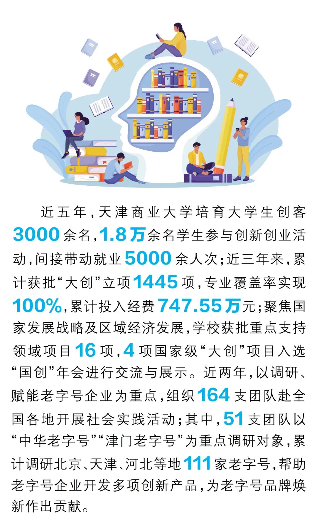 大學生創新創業教育是加強教育強國建設、深化高校教育綜合改革、提高人才培養質量的重要舉措。天津商業大學“依商而建,因商而興”,以商科為特色,堅持培養具有高度社會責任感、深厚商學素養的復合型應用型創新創業人才。以學科建設為龍頭,持續發揮冷鏈物流、現代服務業、冷鏈能源系統等特色學科群的優勢,以高水平學科建設引領學校內涵發展,服務區域經濟社會發展。以教學為根本,建立“意識、知識、能力、體驗”四位一體的創新創業教育體系,推動創新創業教育與思政教育、專業教育與實踐教育融通。以人才培養為目標,學校以商務部老字號協同創新中心及一批省部級平臺為重點依托,聚焦國家和社會需求,推動產教融合,培養學生創新精神和實踐能力,切實服務區域經濟社會發展。
