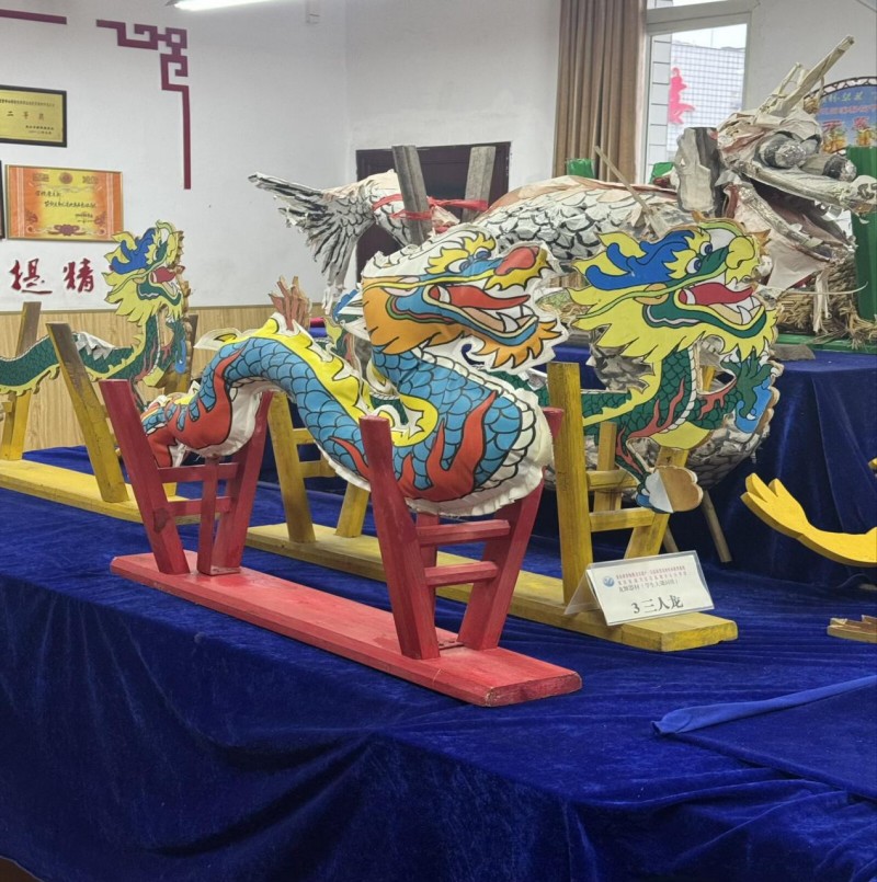 “我們構建了六年梯度傳承體系。”夏傳紅向團隊詳解創新教學模式:“一二年級通過《凳龍飛舞》繪本和動畫了解歷史;三年級掌握單人板凳龍操十二式基礎動作;四五年級分組創編舞蹈;六年級則學習竹編龍具制作。這套校本課程歷時五年研發,走訪了二十余位老藝人,將口傳心授的技藝轉化為系統教材。”如今,非遺傳承的種子已開花結果:學校組建的“小龍人”藝術團登上《魅力中國城》、川渝春晚等舞臺,更在鄉村振興中發揮獨特作用。遠處,三下鄉團隊成員正與學生們共舞一條七米長龍,木凳撞擊的鏗鏘聲在校園里回蕩,仿佛百年前先民慶祝豐收的歡騰,又似新時代文化傳承的激越鼓點。