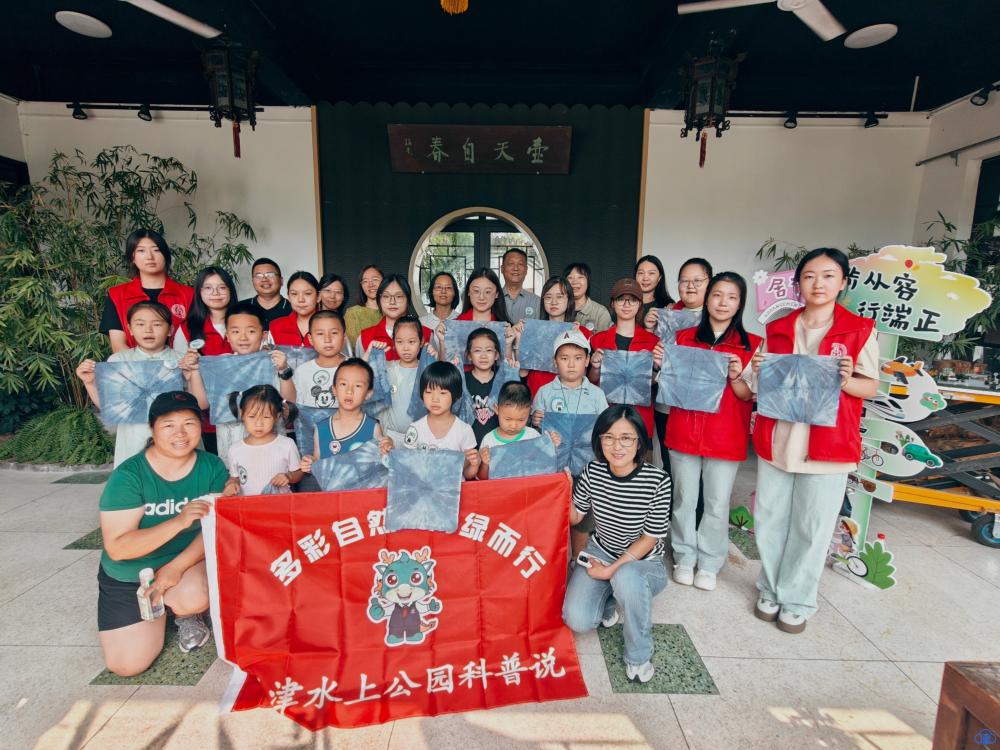 “天津水上公園科普說”與天津商業大學藝術學院師生兩大團隊強強聯手,依托綠肺生態空間,融合AI構建自然、科技與人文交織的生態探索空間,引領青少年解鎖“人與自然和諧共生”的未來密碼。活動中小朋友結合活動知識發揮想象,自己動手通過解鎖“衣”扎染、“食”分類、“住”綠色、“行”未來環節集齊了4枚商大學生自創的低碳徽章,打造了屬于科普小使者的綠色科技世界。