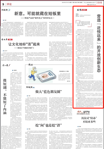 孫一琳:良好的開放創新生態帶來的是更穩定的市場預期、更大的市場空間和更多發展機遇,能夠不斷提高一個地區對經營主體的吸引力,讓更多企業“慕名來”。