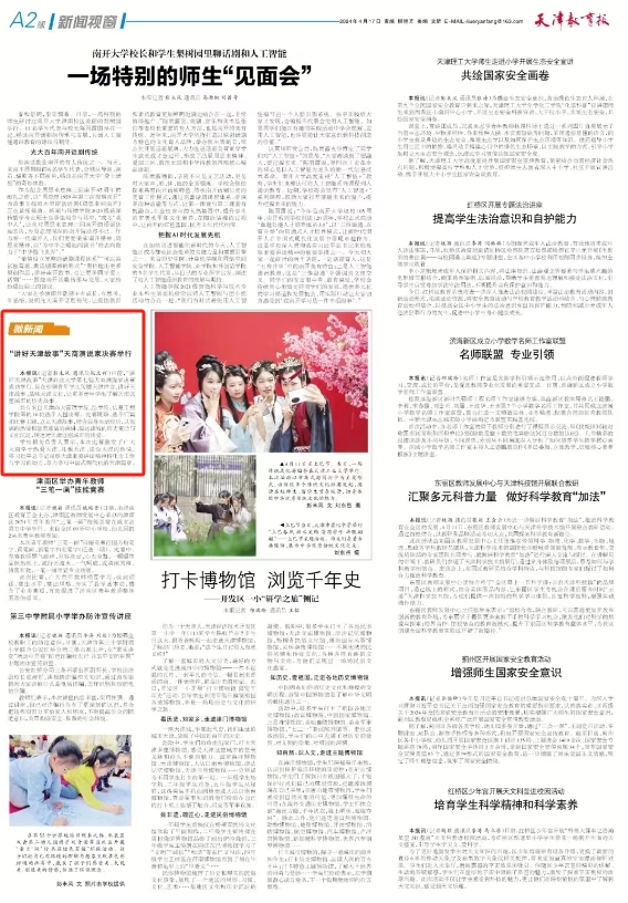 4月17日,《天津教育報》報道學校“講好天津故事”天商演說家決賽舉行。