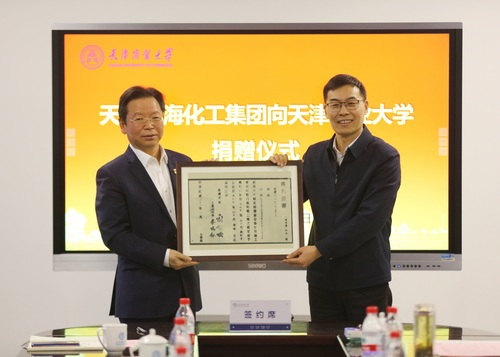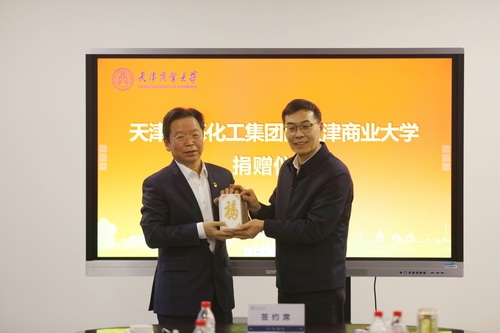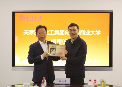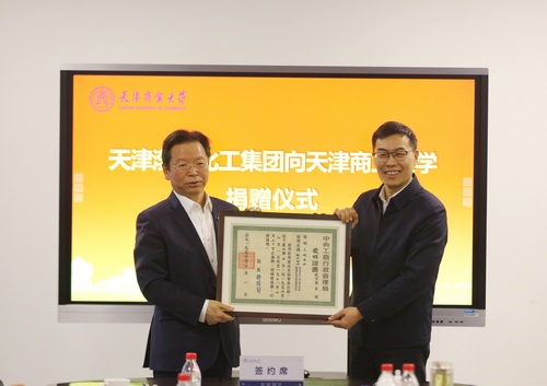 圖片來源:天津商業大學學校向渤化集團頒發捐贈證書