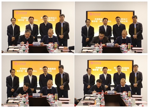 活動現場,學校與渤化集團簽署了全面戰略合作協議,老字號協同創新中心與天津渤化永利化工股份有限公司、天津渤天化工有限責任公司、天津長蘆海晶集團有限公司、天津長蘆漢沽鹽場有限責任公司4家老字號企業簽署了全面戰略合作協議。