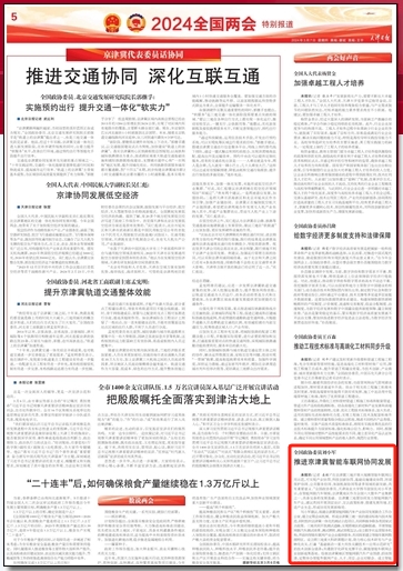 3月7日,《天津日報》報道我校全國政協(xié)委員劉小軍在全國兩會積極履職建言。全國兩會正在進(jìn)行,我校全國政協(xié)委員、圖書館館長劉小軍教授積極履行職責(zé)、主動擔(dān)當(dāng)作為,提出了關(guān)于推進(jìn)京津冀智能車聯(lián)網(wǎng)協(xié)同發(fā)展的建議。新京報客戶端也進(jìn)行了專題報道。