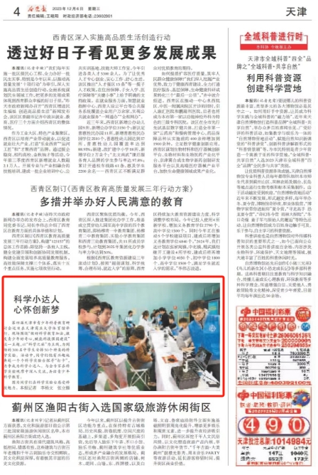 12月6日,《天津教育報》《今晚報》報道學校主辦的第四屆天津市青少年科普教育研討活動。